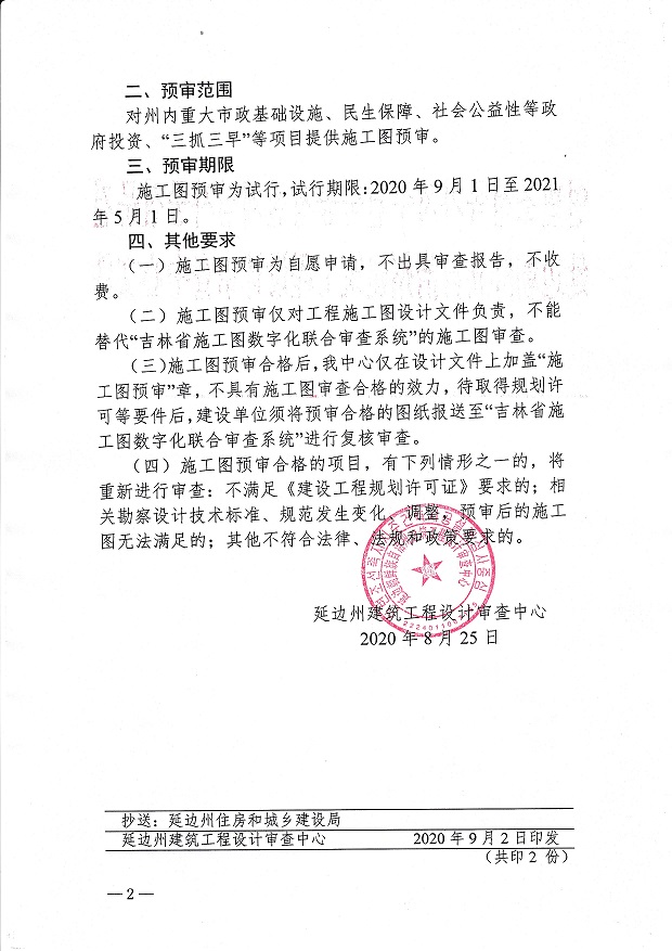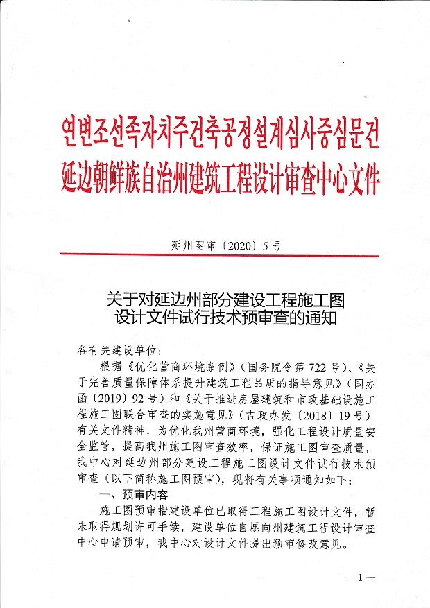 關(guān)于對(duì)延邊州部分建設(shè)工程施工圖設(shè)計(jì)文件試行技術(shù)預(yù)審查的通知